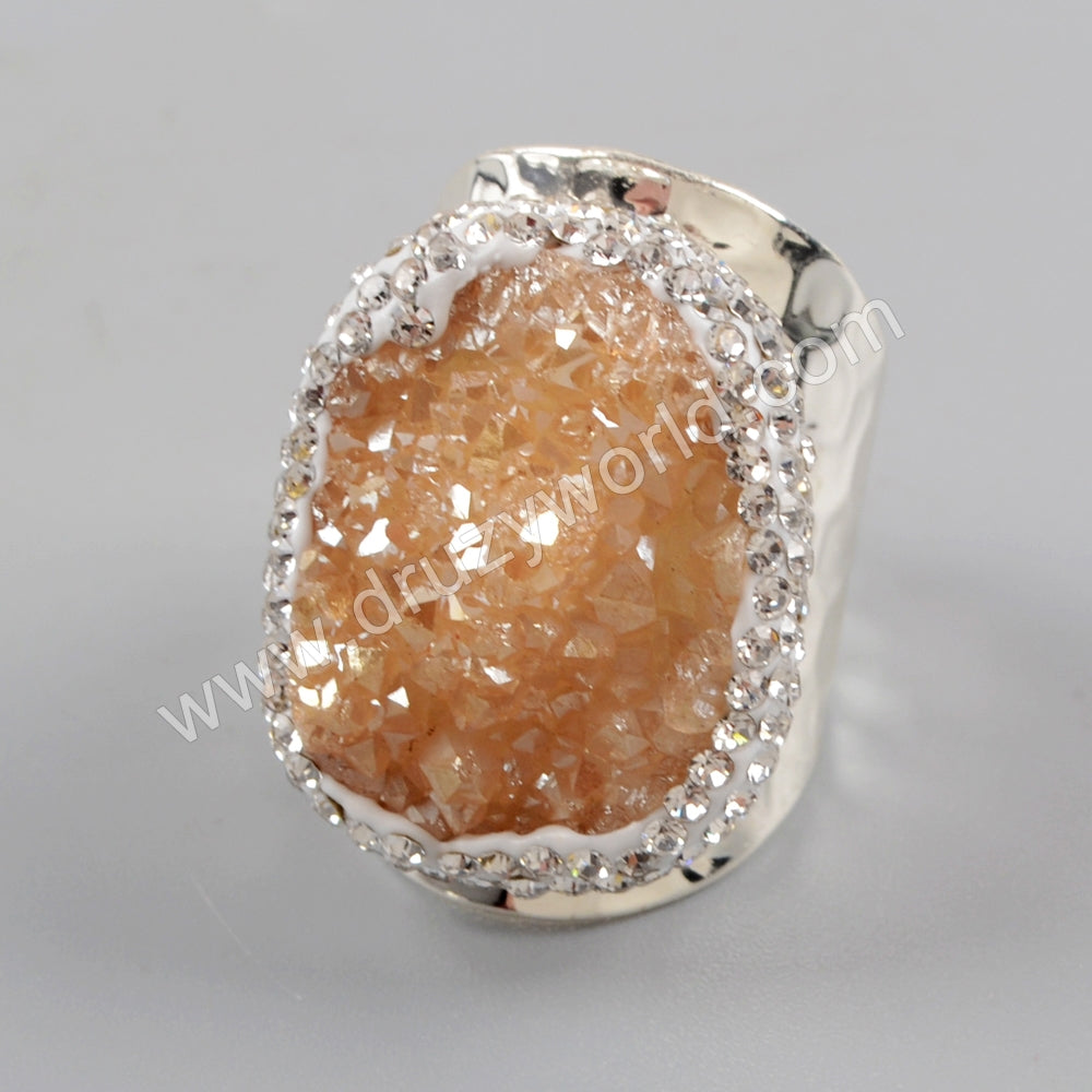 Have a look at the detail description about Rhinestone Pave Titanium Druzy Statement Ring: