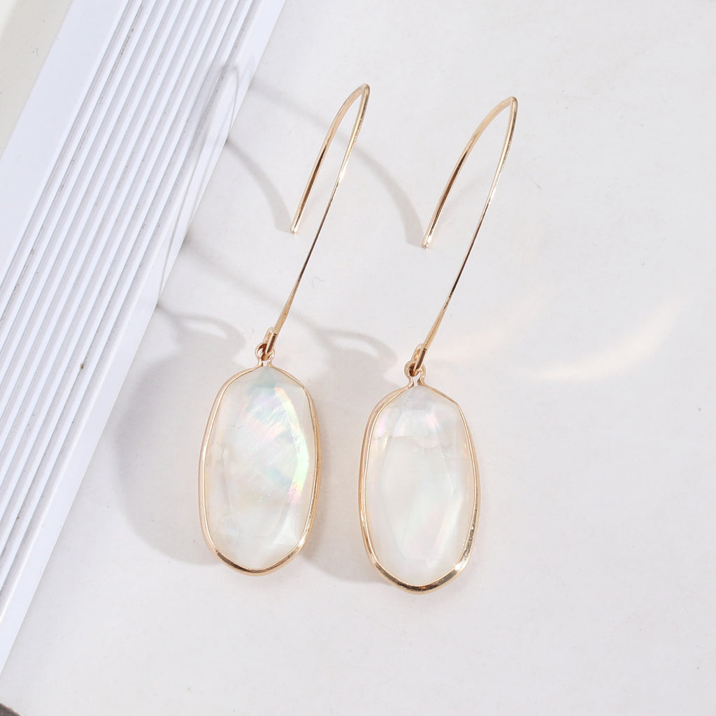 Oval Gold Plated Abalone Earrings, White Shell Earrings, Faceted Natural Seashell Jewelry AL515