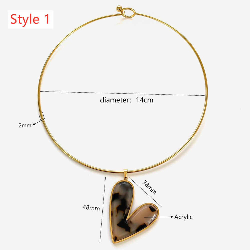 Dainty Choker Necklace with Acrylic Pendants - Heart & Flower, Stainless Steel Collar AL1292