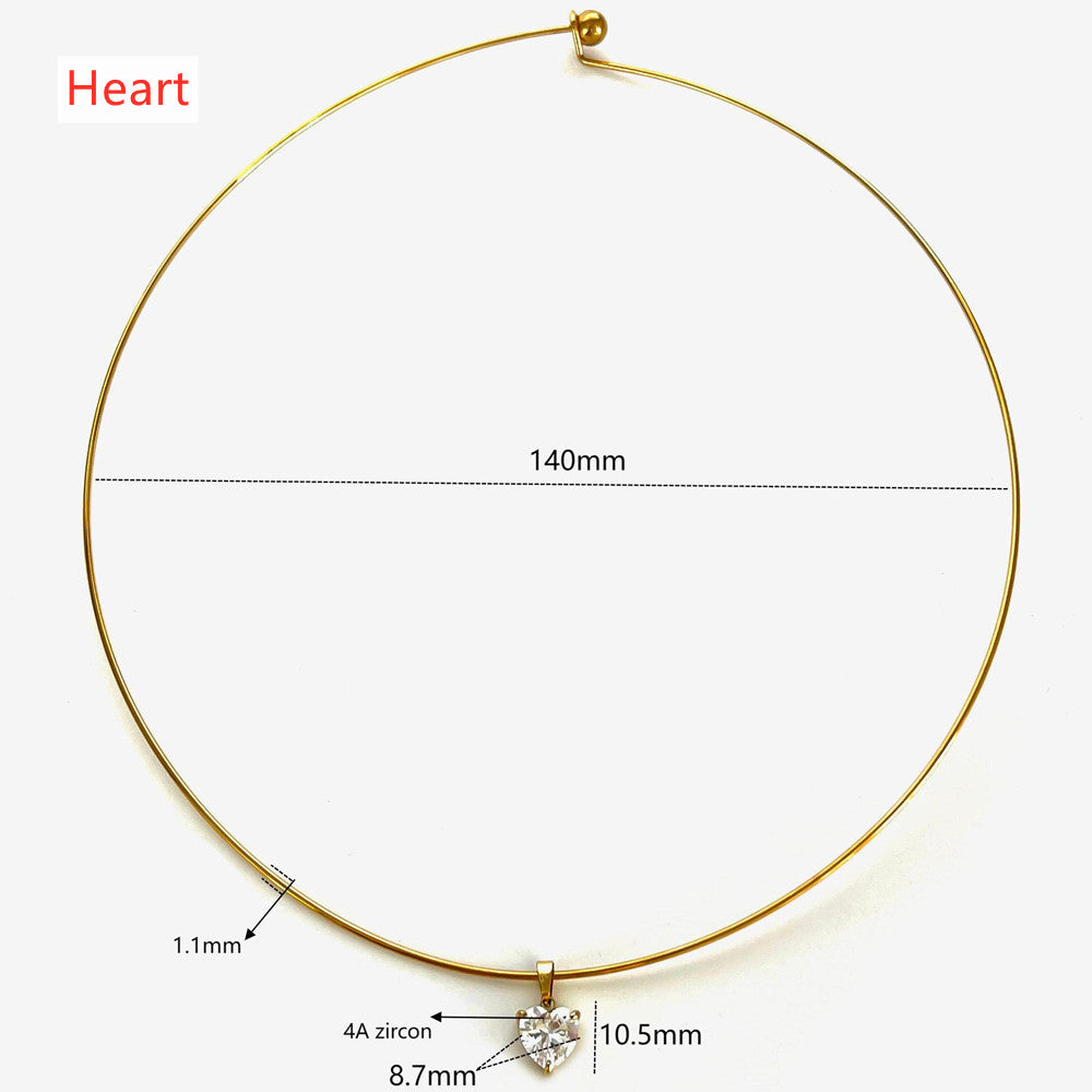 Dainty Choker Necklace with Zirconia Pendants - Heart, Marquise & More, Stainless Steel Collar AL1291