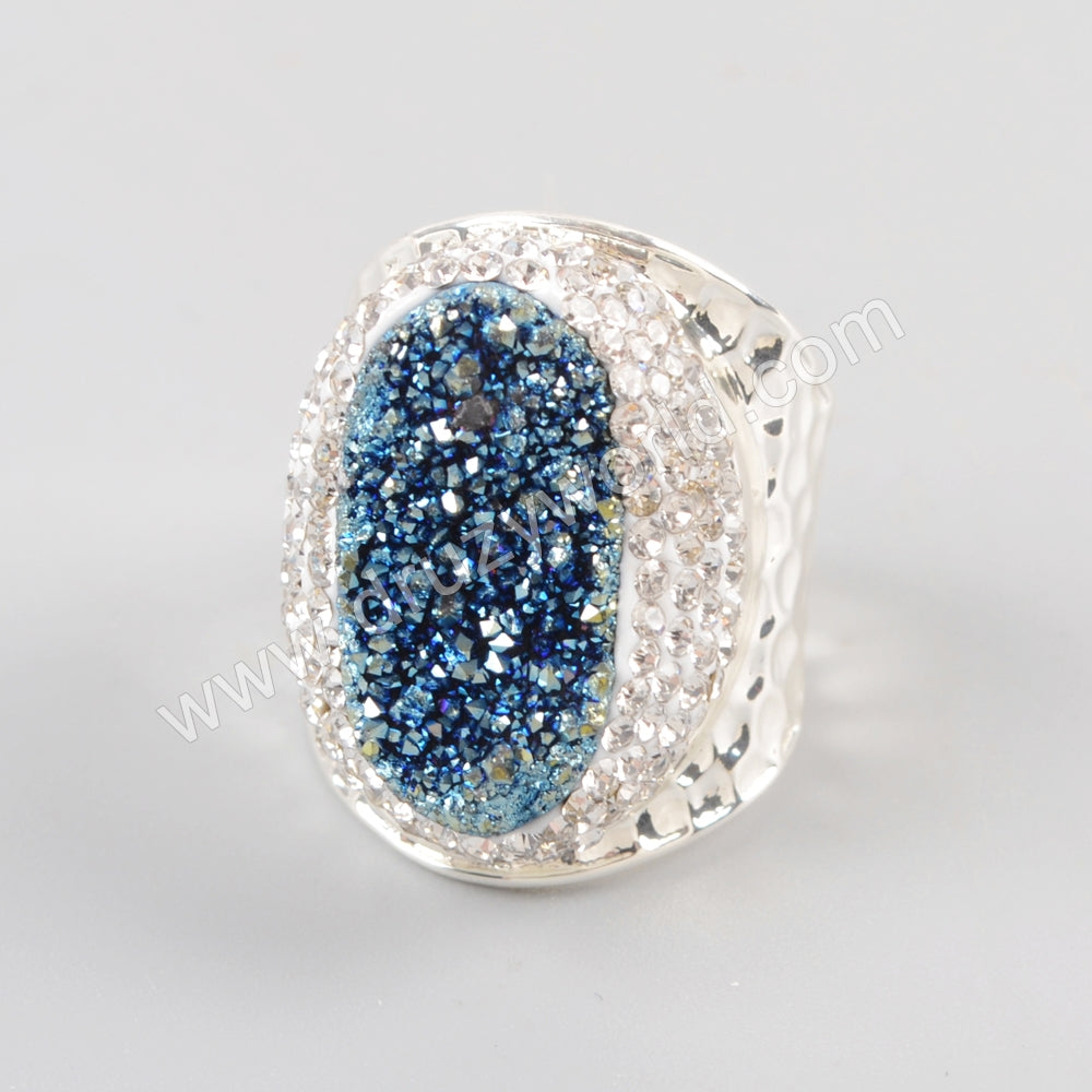 Silver Plated Rhinestone Pave Druzy Agate Ring JAB951