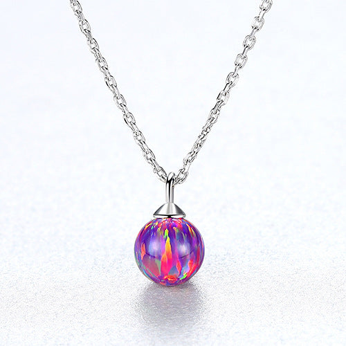 S925 Sterling Silver Opal Ball Pendant Necklace, Dainty Opal Jewelry AL615