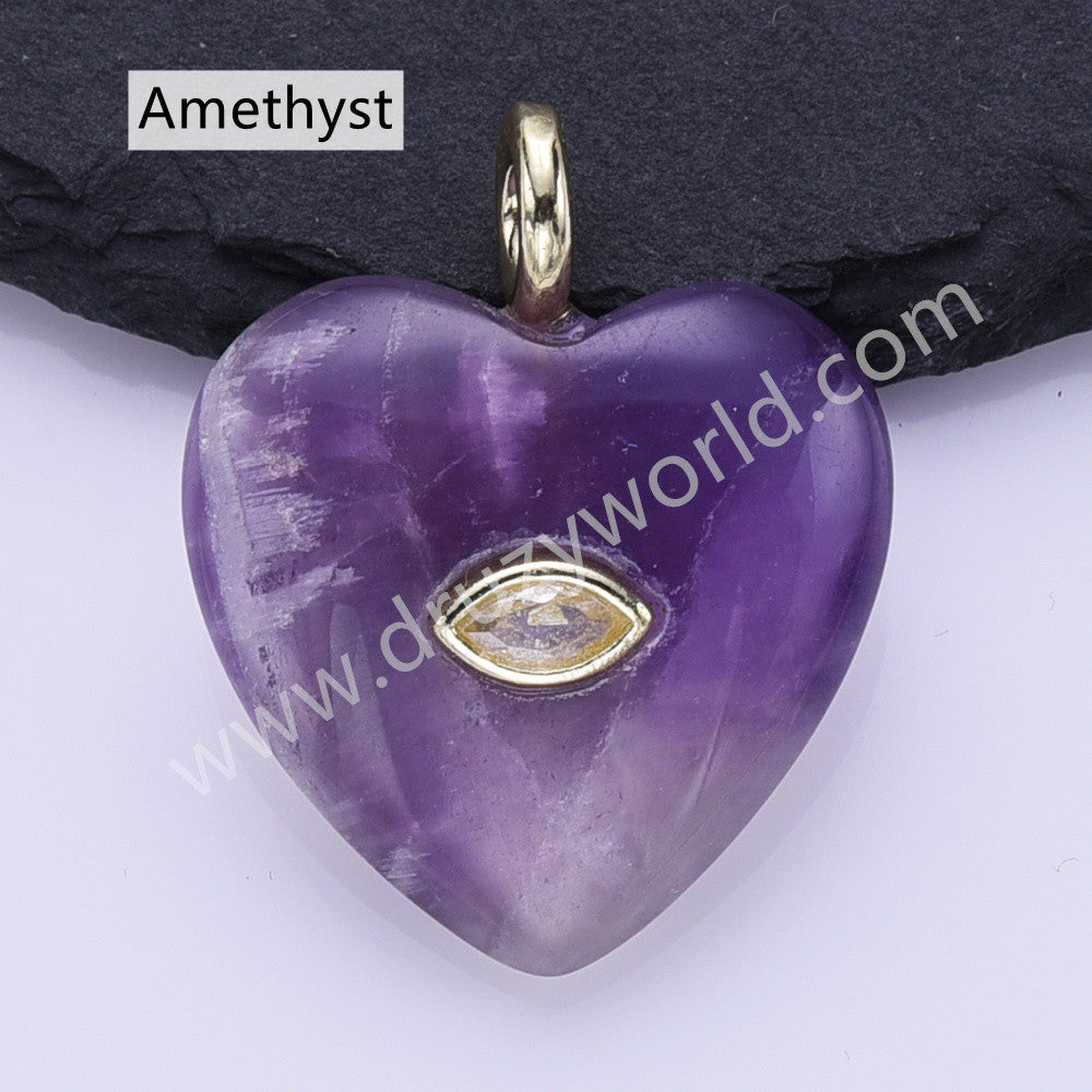 CZ Heart Natural Stone Gold Plated Pendant WX2274
